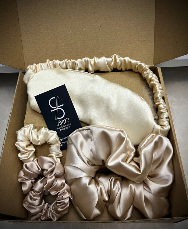 پک هدیه زنانه ساتن بژ نباتی مدل 032 🤍