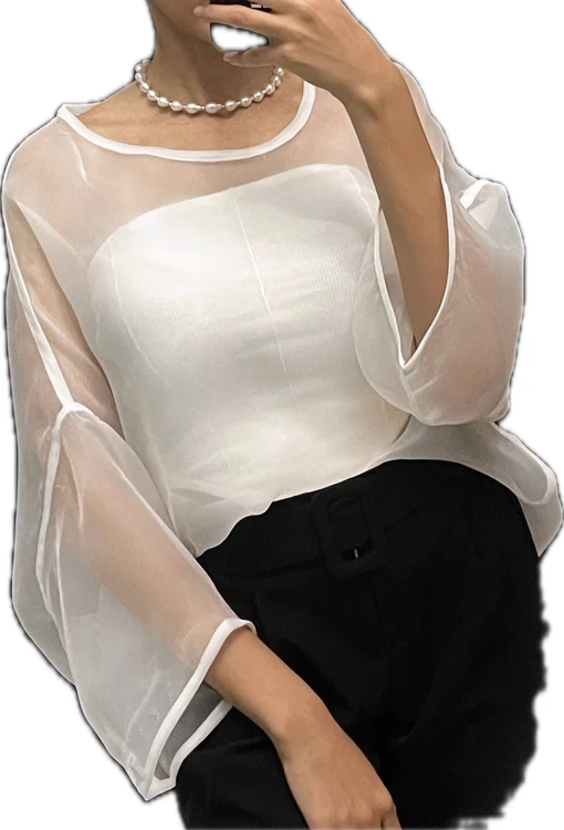 ۱ بلوز ارگانزا سفید ( بدن نمایی دارد )