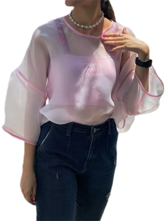 ۱ بلوز ارگانزا صورتی ( بدن نمایی دارد )