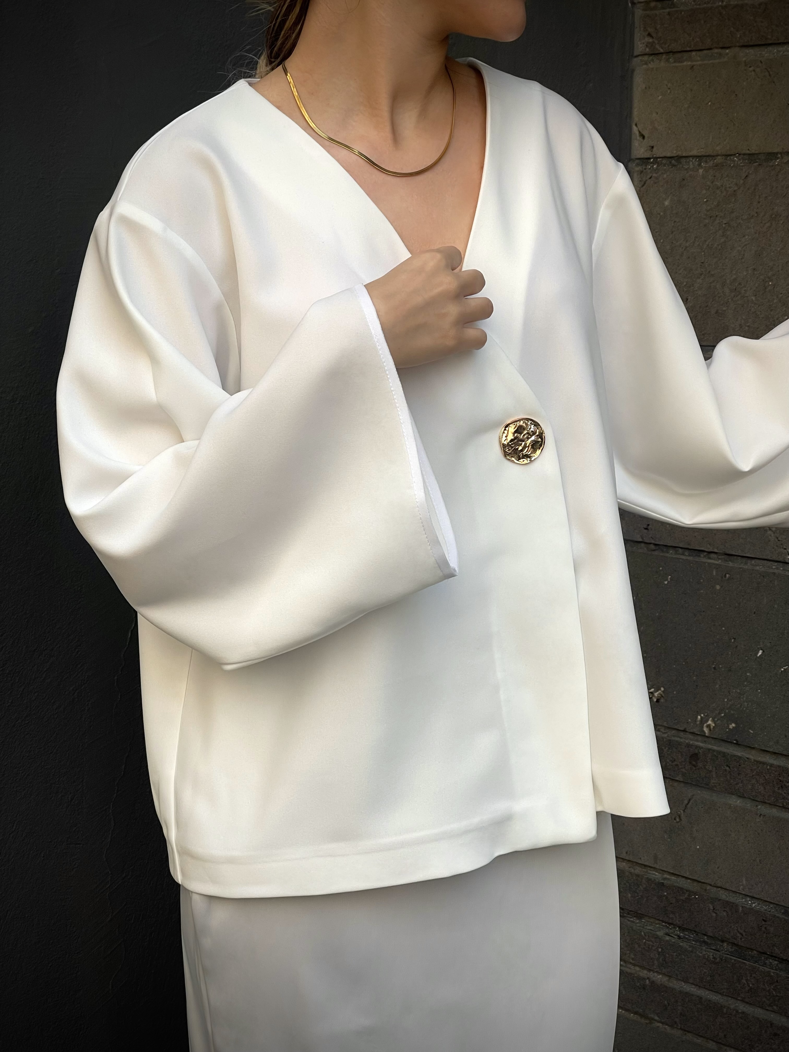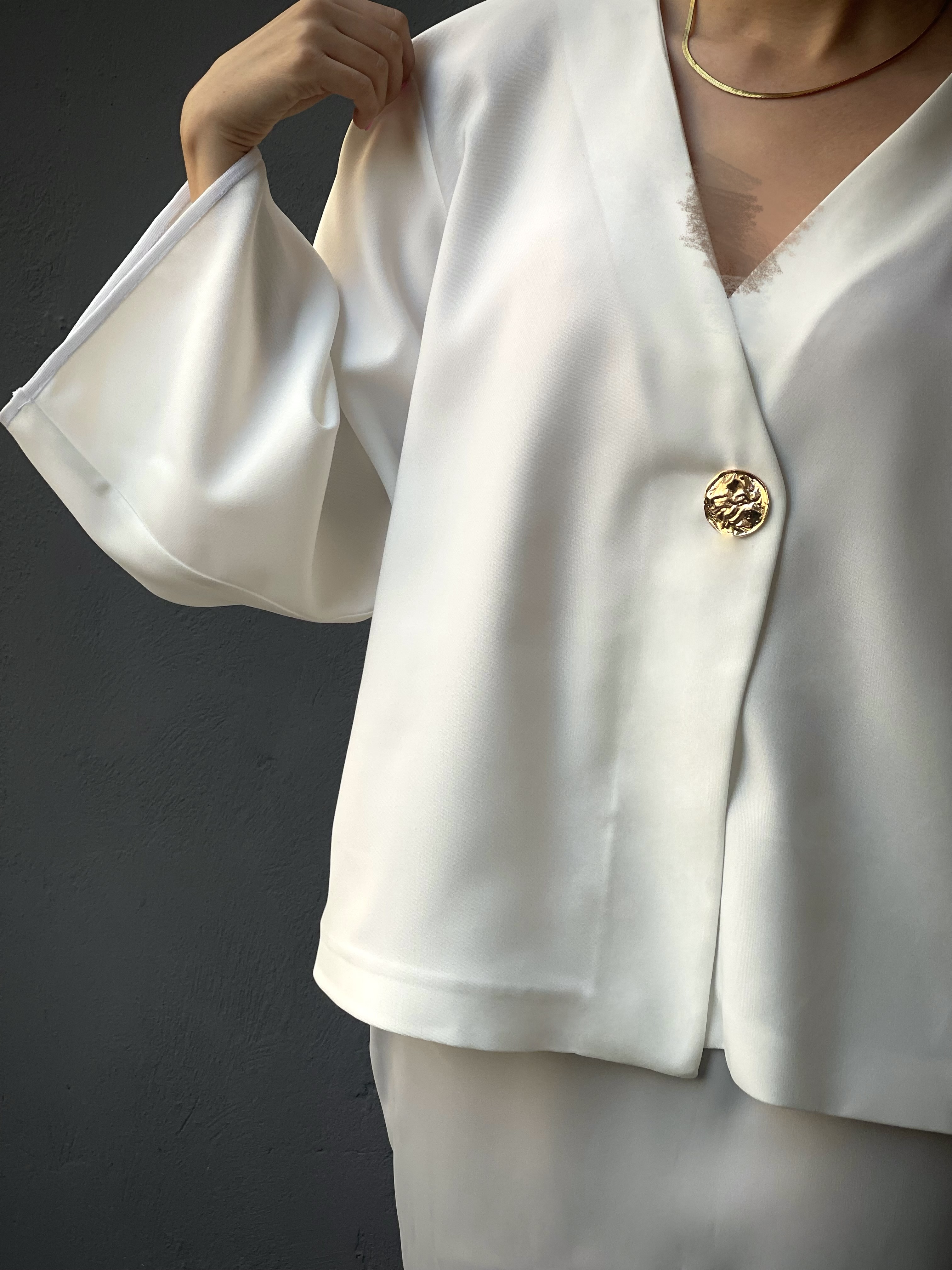 کت زنانه سفید مدل لارین جنس کرپ درجه یک داخل گان دوزی پارچه سبک و ریزش دار مناسب بهار قدحدود ۶۰ فری تا سایز۴۴ ۱/۸۷۰